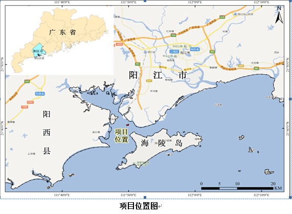 建設地點: 擬建工程地址位于陽江市西南,平崗鎮吉樹村以南,地處海陵山灣中部、豐頭河口的下段。碼頭前沿位置坐標大致處于21°40′30″N、